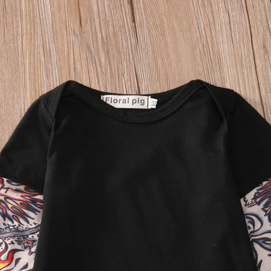 Cute Newborn Baby Boy Tattoo Print Bodysuit