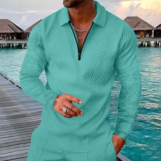 Men's Zip-Up Casual Long Sleeve Polo – Stylish Comfort