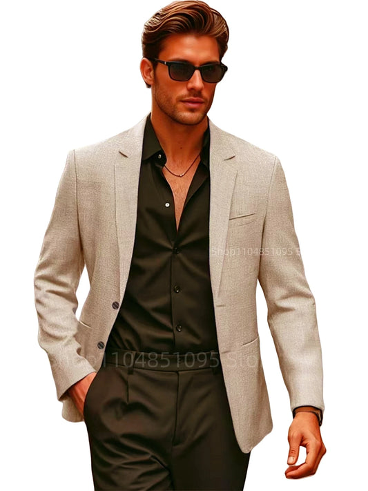 Summer Fashion Casual Suit Jacket Beige Linen Men's Blazer Regular Slim Fit Comfortable Notch Lapel Two Buttons Suit Jacket Coat