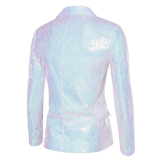 Shiny White Sequin Glitter Blazer for Men One Button Peak Collar Tuxedo Jacket Mens Wedding Groom Party Prom Stage Costume Homme