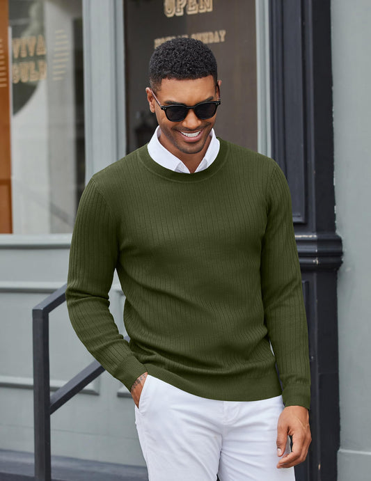 COOFANDY Men Crew Neck Knit Sweaters Lightweight Knitted Sweaters Long Sleeve Pullover Sweater Casual Dress Sweater