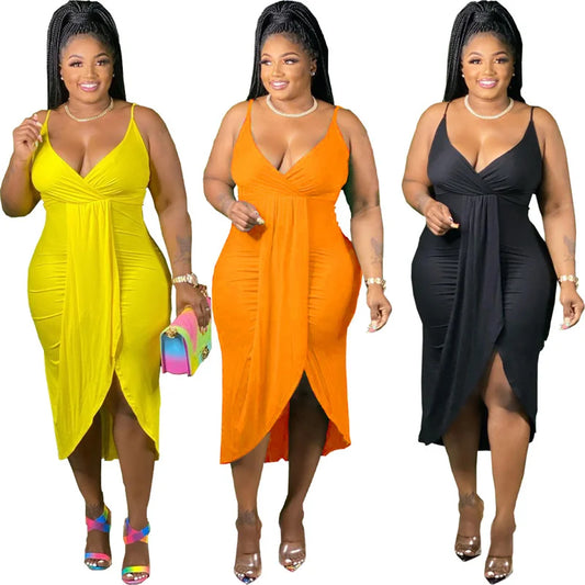 Wmstar Plus Size Women Dresses Summer Clothing Sexy Bodycon Stretch Sling Solid Maxi Party Dress 2022 Wholesale Dropshipping