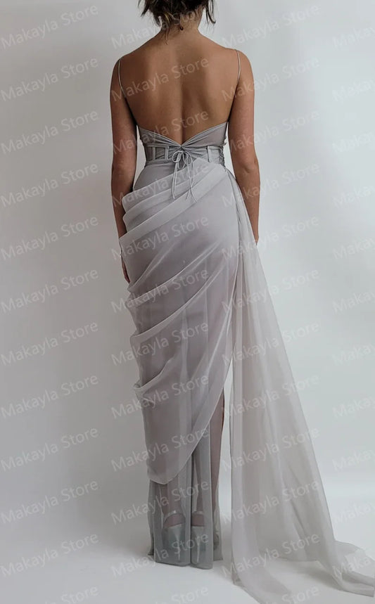 Gray Sexy Unique Prom Dress Spaghetti Strap Sleeveless Applique Split Chiffon Plus Size Women Formal Evening Party Elegant Gowns