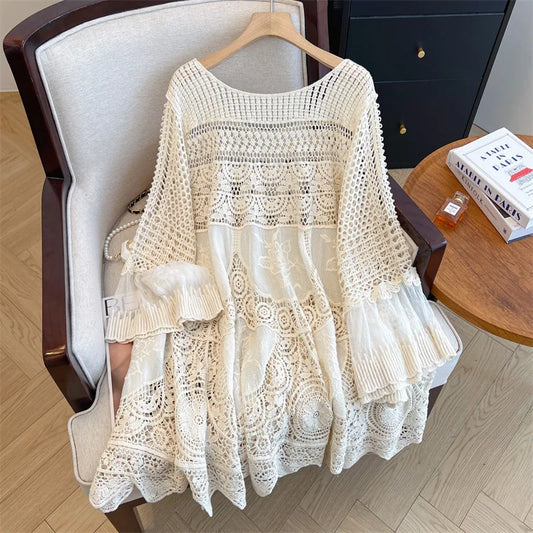 Precio habitual $43.99 CADPrecio habitualPrecio unitario / por$69.99 CADPrecio de oferta $43.99 CADElegant Lace Tops Embroidery Hollow Out Solid Stand Collar Female Tunic Plus Size Petal Sleeve Spring Womens Tops And Blouses