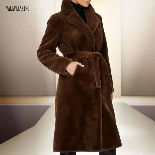 2025 Winter Plus Size Faux Fur Long Coat Women Elegant Long Sleeve Fluffy Outwear Jacket Ladies Large Thick Warm Furry Outwear
