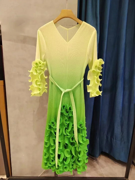 Vintage Knit Elegant Chic Slim Pleated Dress French Evening High Street Plus Size Clothing bohemian dress
