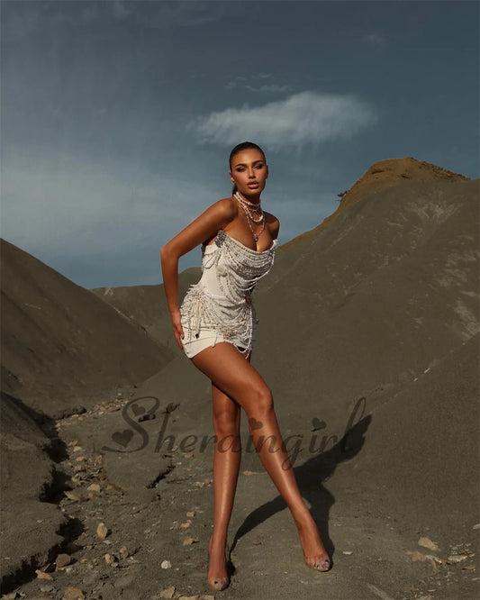 SHERAIN Modern Mini Evening Dresses for Women Beading Flower Pearls Bodycon Sleeveless Vestidos Largos de Gala Noche Customized