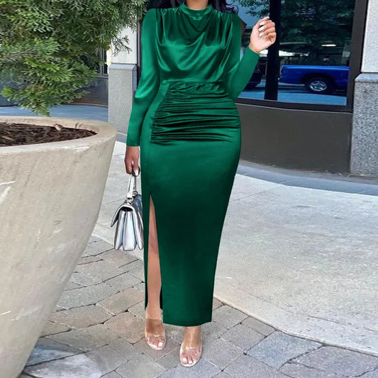 Long Dress Women Party Pleated Bandage Elegant Evening High Waist Summer Dresses Prom Formal Green Bodycon Maxi Work Vestidos
