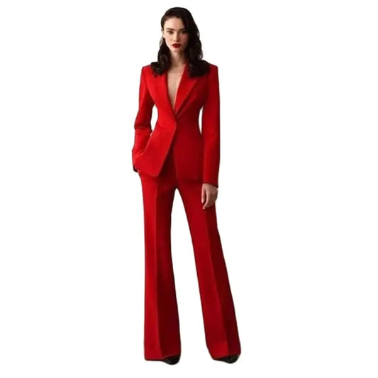 Luxury Red Suit Women Single Breasted Notch Lapel 2 Piece Jacket Pants Blazer Set Formal Office Lady Slim Fit Female Clothing