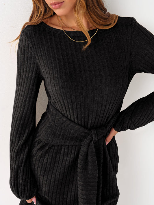 Lightweight Lantern Sleeve Fall Mini Sweater Dress