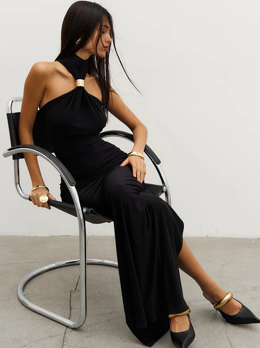 Jumpsuit Elegant for Women Vintage Daily Plain Halter Backless Sleeveless ladies Elegant Loose Wide Leg Jumpsuit Spring