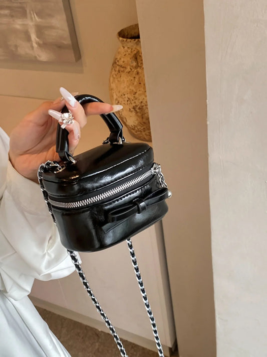 Spring/Summer Women Lipstick Mini Bag Solid Color Leather Bow Appliques Cross body Bags Korean Casual Fashion Female Chain Purse