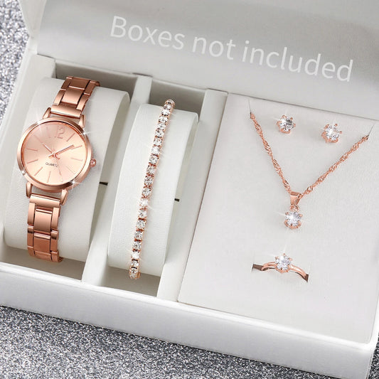 6PCS Ladies Luxury Watch & Jewelry Set