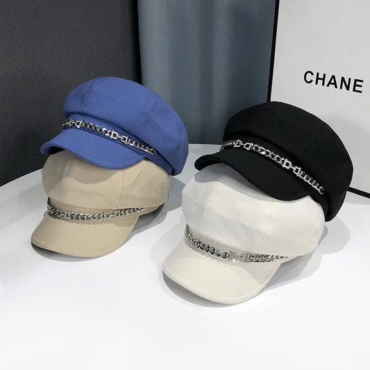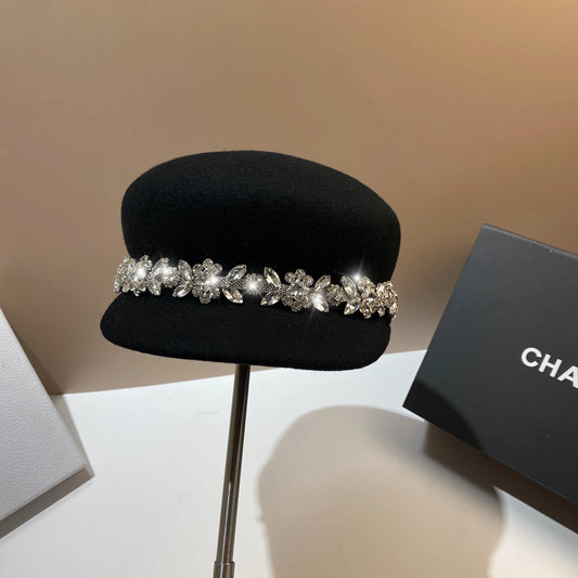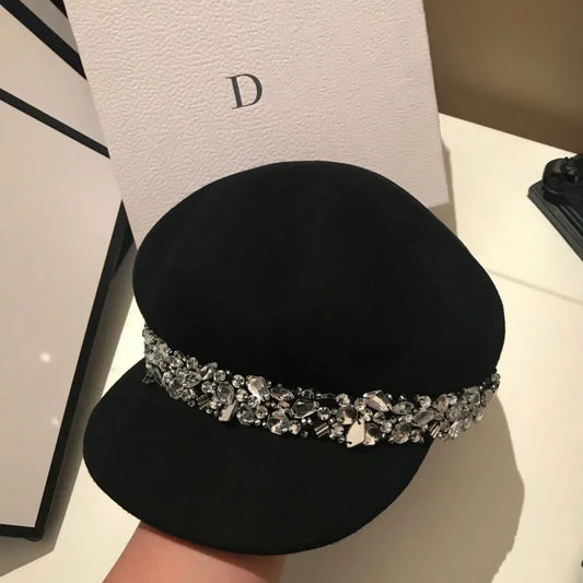 Chic Navy Rhinestone Newsboy Cap for Women