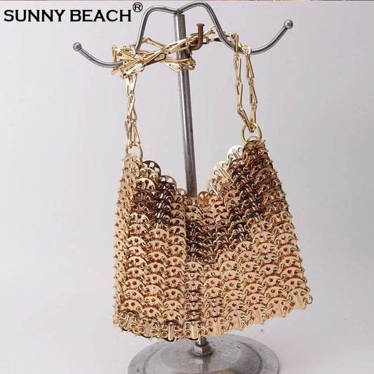 Women's Bag Designer Handbag Aesthetic Bags Hand Woven Metal Gold Silver Splicing Clutch Luxury Holiday Shoulder Bag Tote Bag