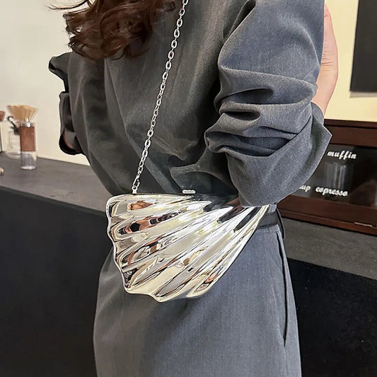 Metal Shell Shape Clutch Bag Smooth Mirror Surface Silver Gold Women Evening Party Cute Purse Handbag 2024 New Wholesale