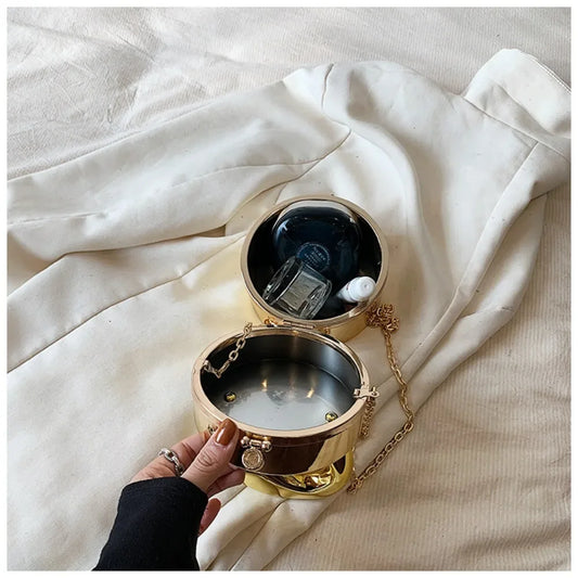 Gold Box Handbag Fashion Shiny Women Bag Party Evening High Quality Clutch Hand Bags For Women Metal Chain Messenger Purse 2024