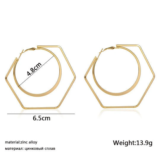 Gold Big Hexagon Hoop Earrings - Statement Style