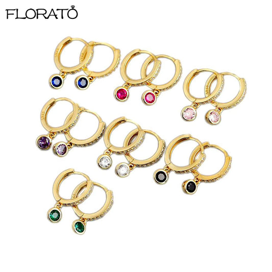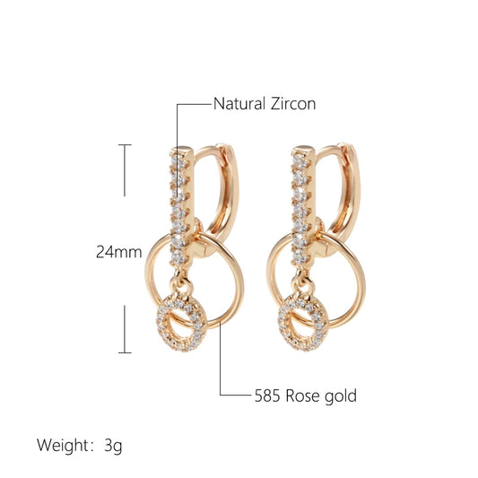 New Zircon Hoop Earrings 585 Rose Gold Pendant for Women Geometric Hang Ear Golden Circle Hoop Earrings 2021 Party Jewelry Gift