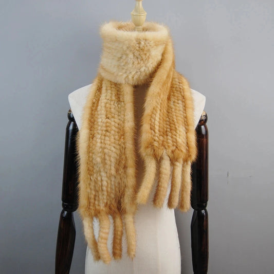 2025 Hot Sale Long Style Winter Warm Real Natural Mink Fur Scarf Real Mink Fur Shawl Fashion Women Knitted Real Mink Fur Scarves