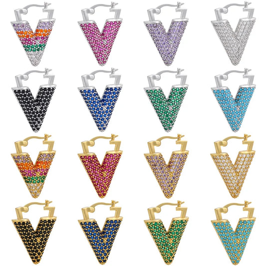 ZHUKOU NEW Geometric triangle hoop earrings Creative women small hoop earrings fashion rainbow earrings Jewelry wholesale VE389
