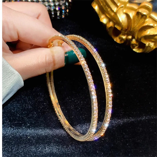 Big Round Crystal Hoop Earrings for Women Bijoux Geometric Rhinestone Earrings Statement Jewelry Gifts
