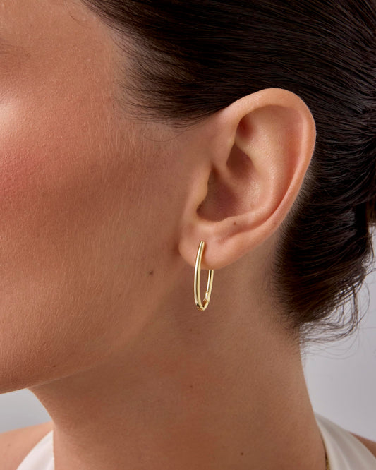 PAVOI 14K Gold Plated Sterling Silver Posts Geometric Hoop Earrings for Women | Trendy Geo Long Oval U-Shaped Link Triangle Huggie Hoops Earring
