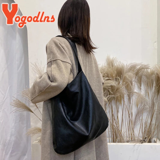 Yogodlns Vintage Women Tote Bag Large Capacity Shoulder Bag Soft PU Leather Handbag and Purse Designer Lady Armpit Bag Purse sac