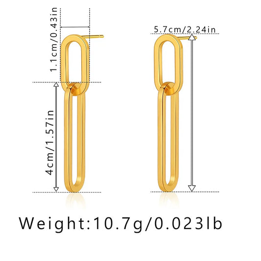 Creative Geometric Paper Clip U Shape Ear Buckle Hoops with Thread Geometric Hollow Drop Statement Earrings for Women