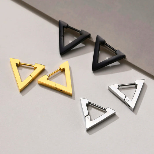 Triangle Hoop Earrings, Geometric Huggie Hoops Earrings, Heart Pentagram Mens Hoop Earring,Stainless Steel Simple Mens Earing.