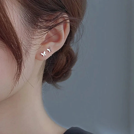 Butterfly Geometric Asymmetric Stud Earrings for Women Small Open Huggies Hoops Ear Piercing Earring Jewelry Girls