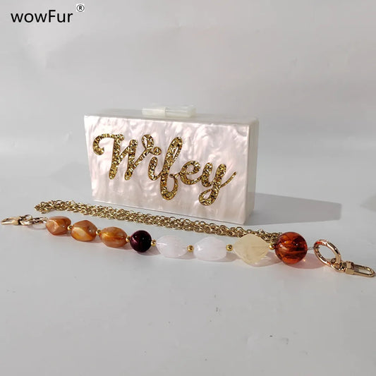 Pearl White Gold Glitter Letter Name Wifey Wedding Party Purse and Handbag Luxury Handbags Women Bags Designe Women's Clutch Bag