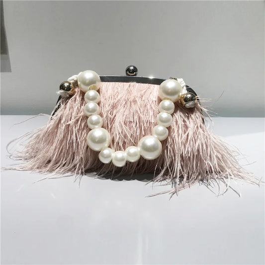 Luxy Moon Feather Handbag Women's Evening Clutch Bag White Pearl Chain Shoulder Bag Luxury Women Bags Design Party Purse ZD1647