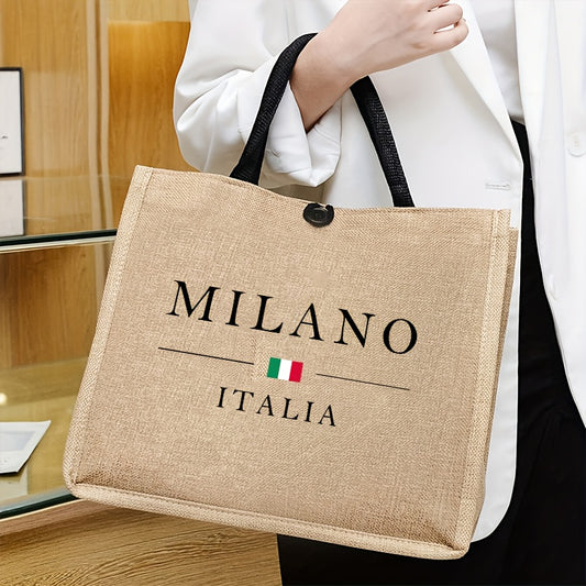 [Durable Fabric Handbag with Pocket] Chic Milan-Inspired Letter Print Tote Bag - Spacious & Durable Fabric Handbag with Inner Pocket, Perfect for Travel, Shopping & Gifting