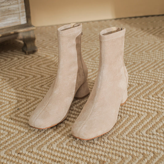 Botines de ante ajustados con tacón alto y grueso Botines de tacón alto
