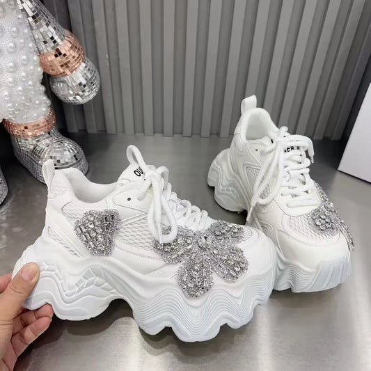 Women's Luxary Crystal Sneakers 2025 New Mesh Breathable Shoes Women Sports Running Shoes Ladies Fitness Shoes Chunky Sneakers