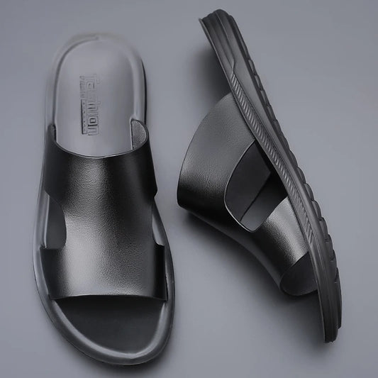 New Fashion Men Shoes Flats Summer Casual Slides Outside Sandals Beach Work Slippers Soft Leather Flip Flop Shoes