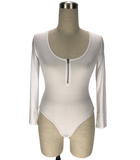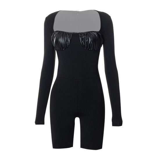 Casual Crew Neck Long Sleeve Zip Slim Short Jumpsuit