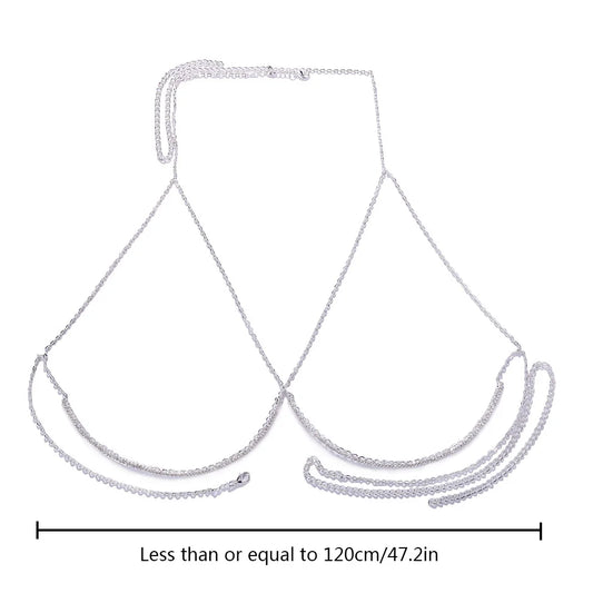 Sexy Thin Link Crystal Chest Bracket Bust Chain Bra Harness Beach Bikini Rhinestone Body Chain Jewelry Necklace For Women Party