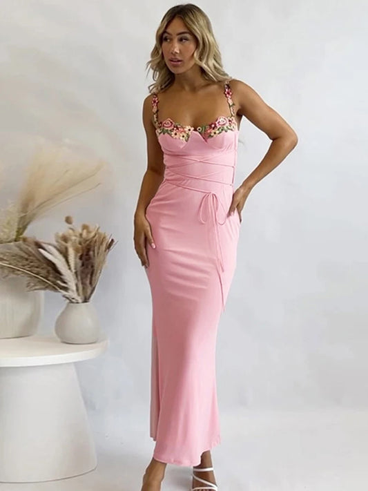 Women Sling Maxi Dresses Summer New Streetwear Fashion Print Casual Slim Dress Sexy Backless V-Neck Elegant Lady Dress Clothing