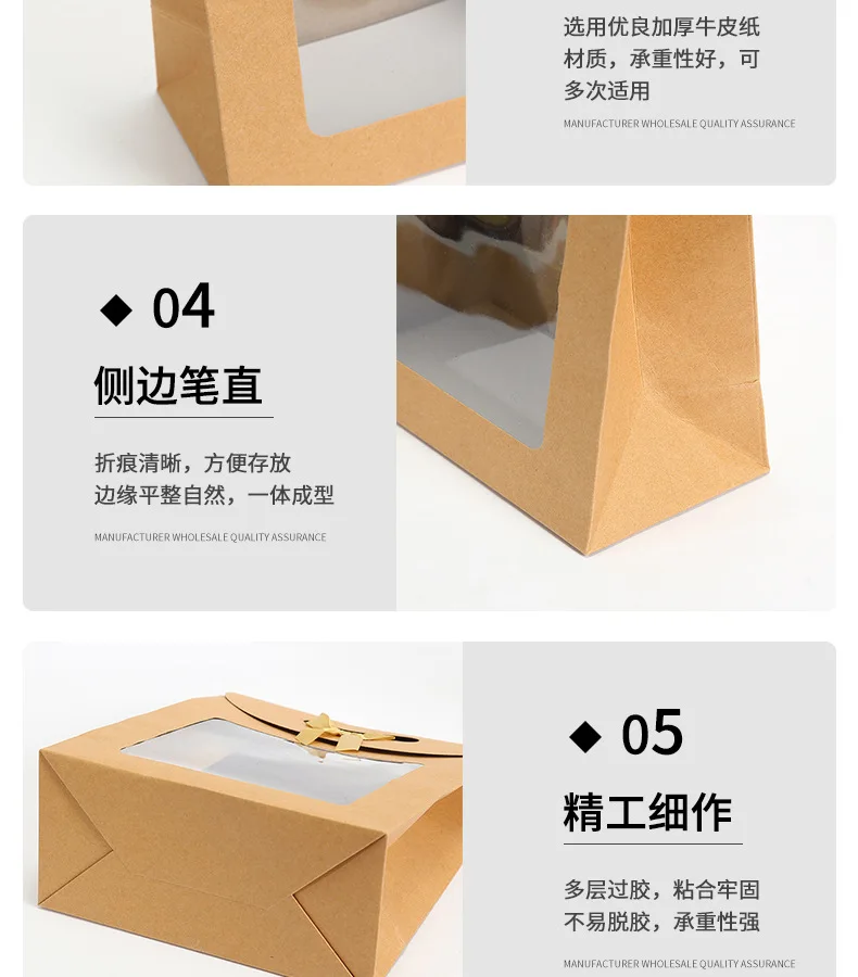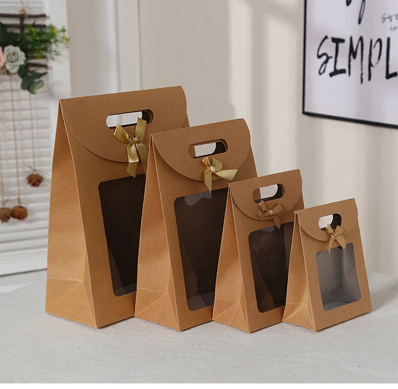 10pcs Transparent Window Kraft Paper Bags For Wedding Birthday Baptism Home Party Candy Gift Packaging Box Baking Takeaway Bag