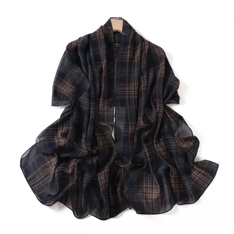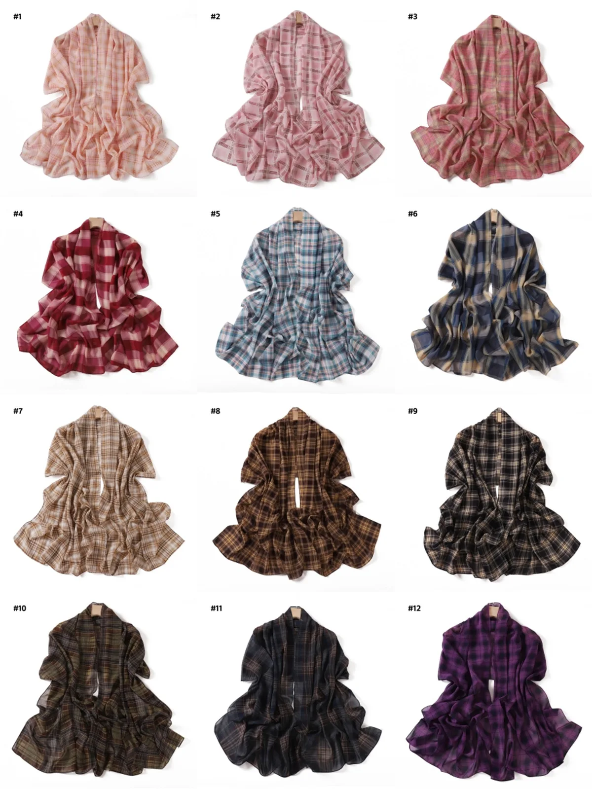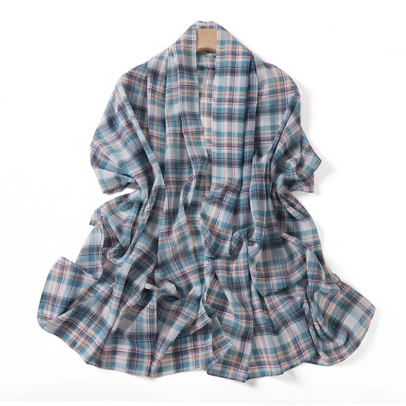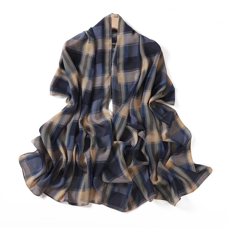 175*70CM New Plaid Print Islam Long Chiffon Scarf Wrapped Scarf Muslim Women's Hijabs Shawl Ramadan Female