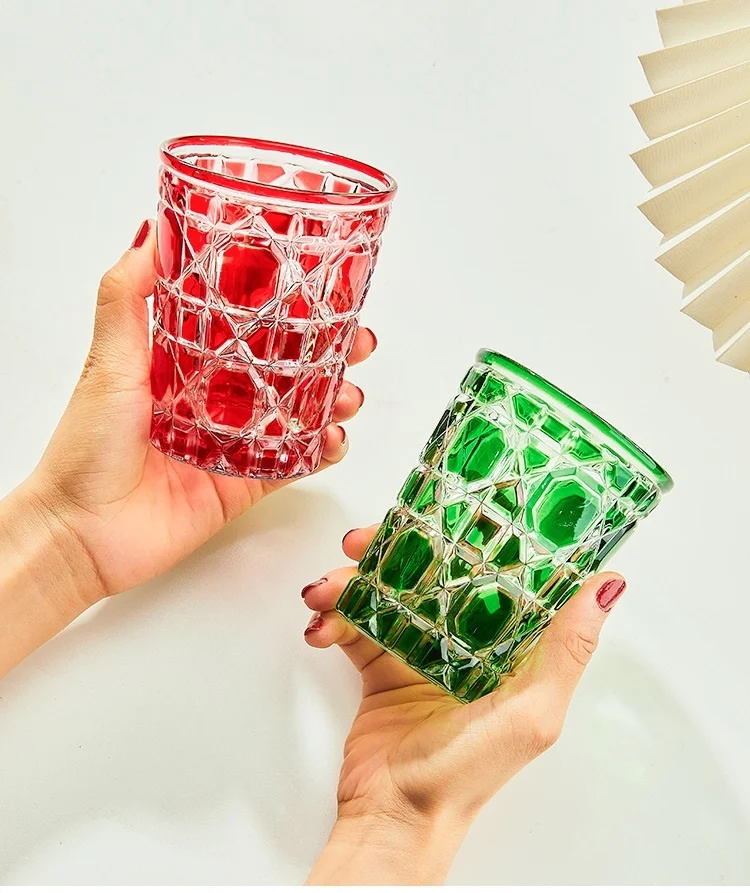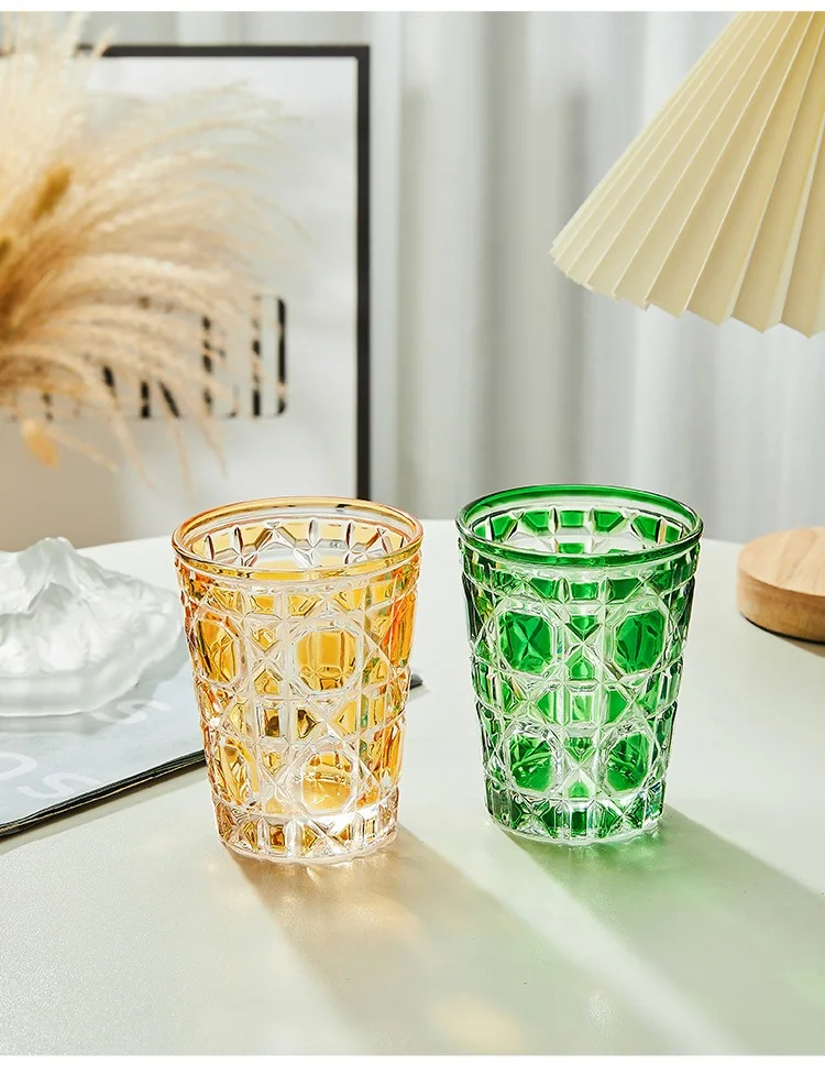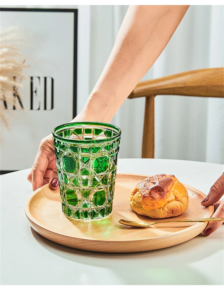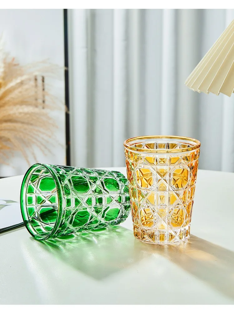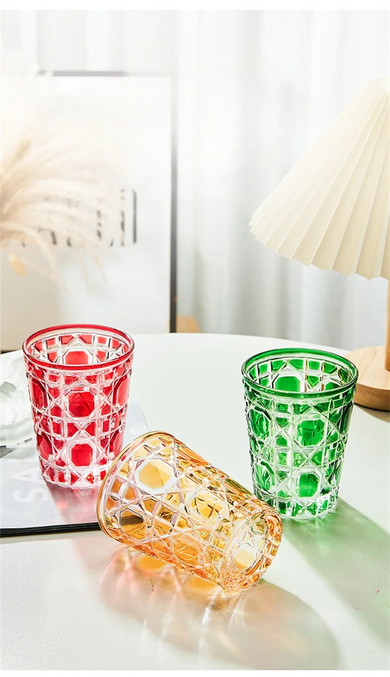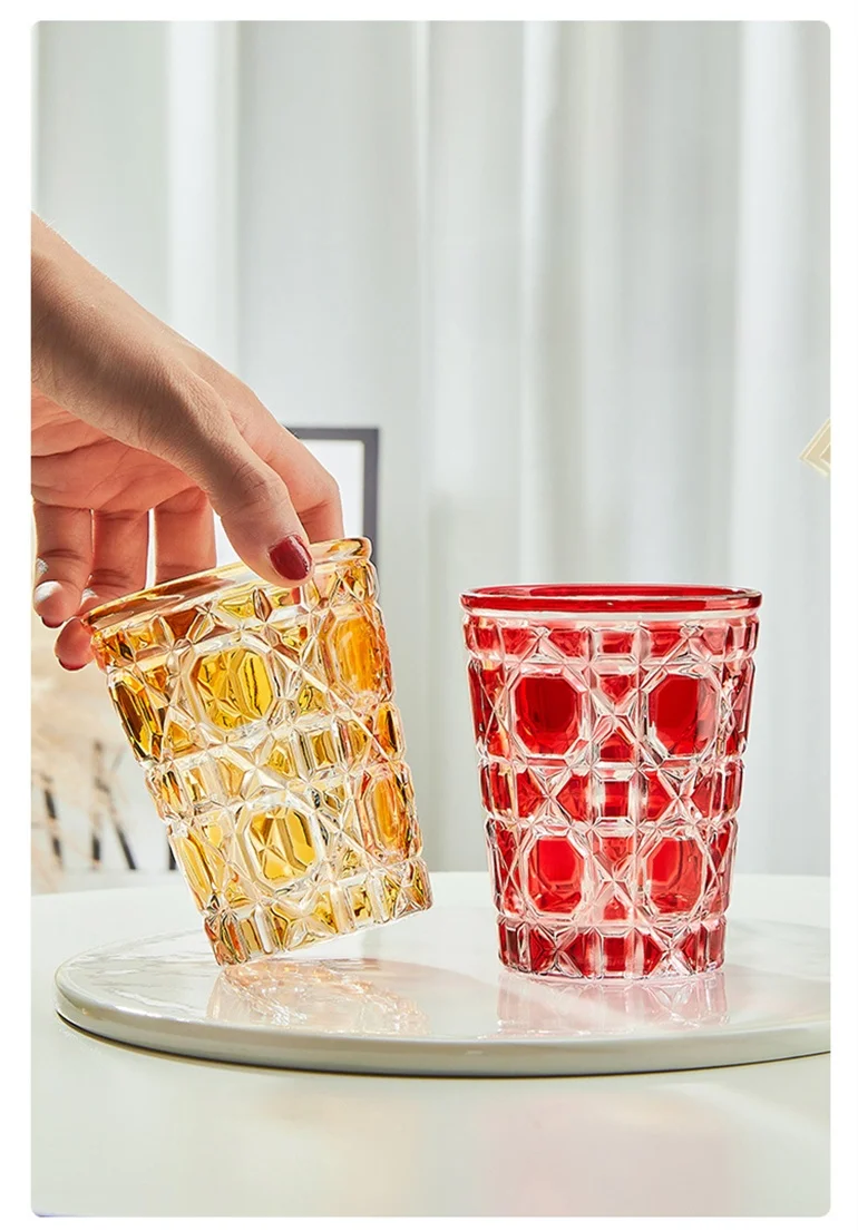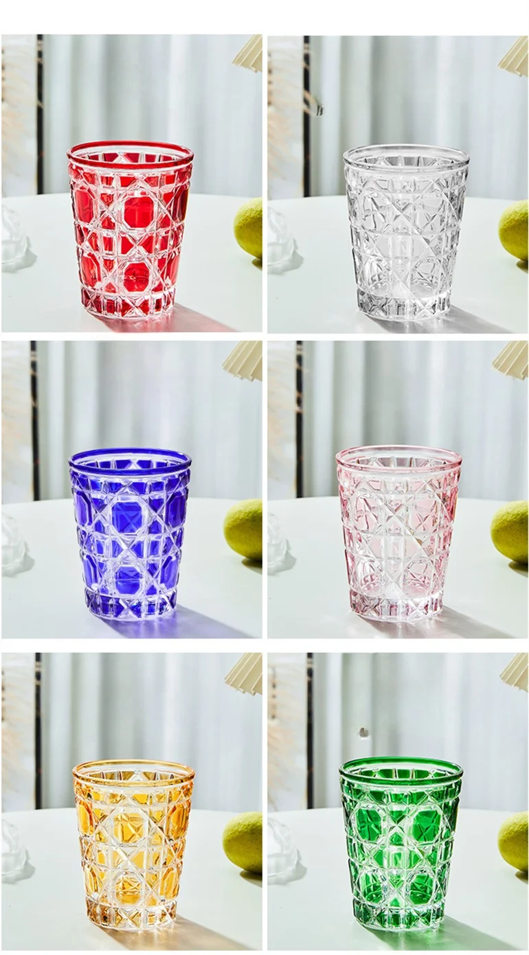 1PC 310ml European Style Colorful Creative Hand-carved Heavy Thick Bottom Whiskey Bourbon Spirits Water Glass Tumbler Cup