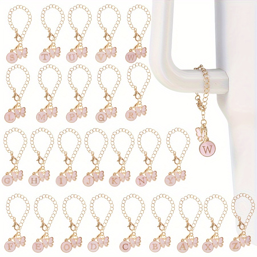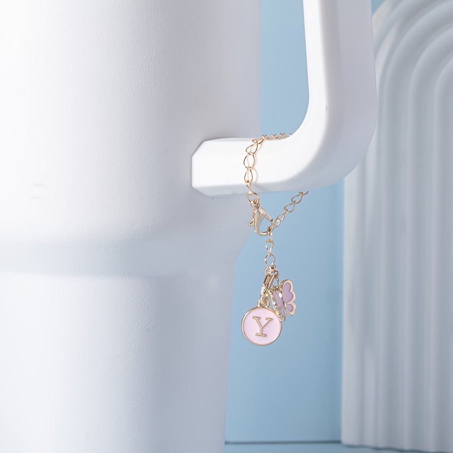 1pc Alloy Personalized Handle Charm with Butterfly and Letter Pendant for Stanley Cup Tumbler Chain Accessory Decor