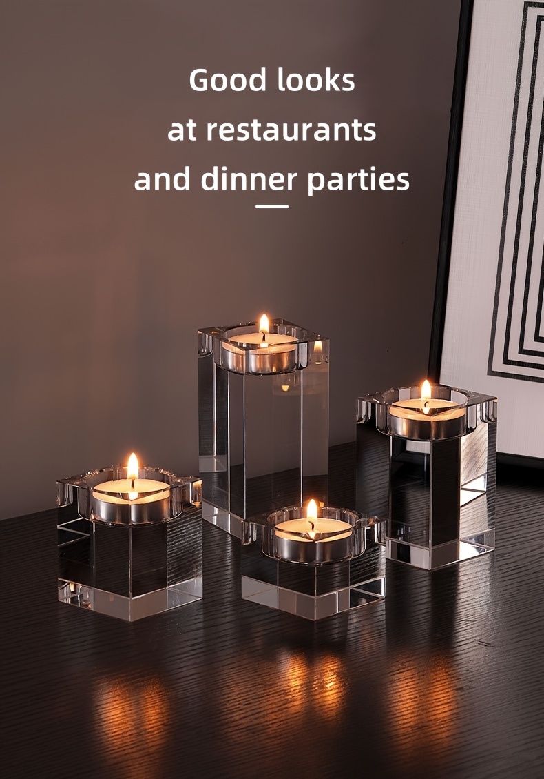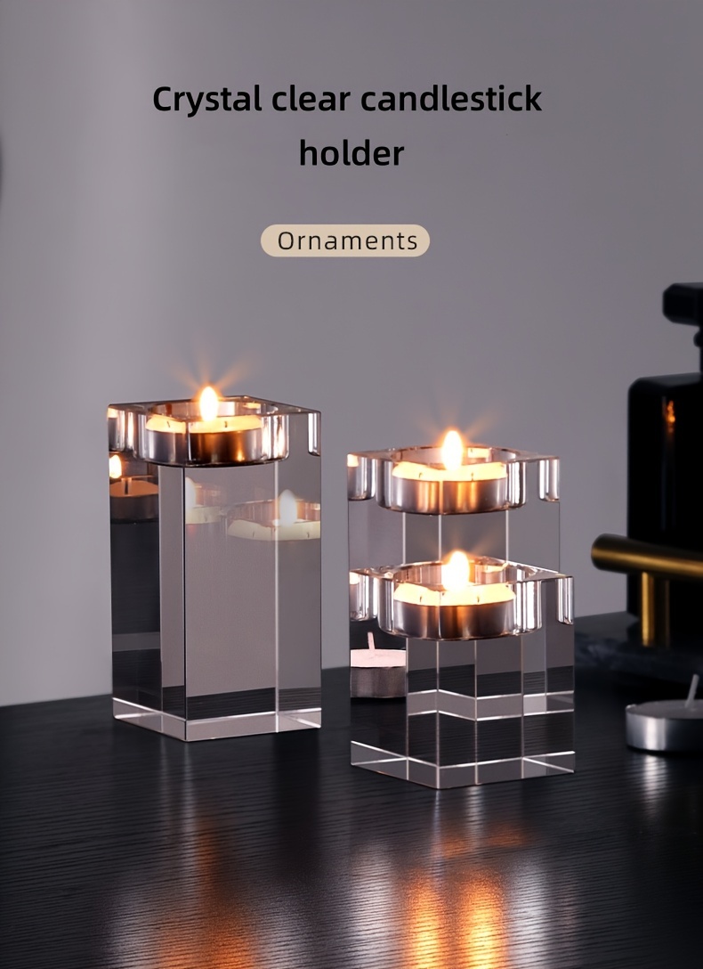 1pc Transparent Crystal Christmas Candle Holder, Indoor Home Decoration, Romantic Candlelight Dinner Props Table Tray Ornament