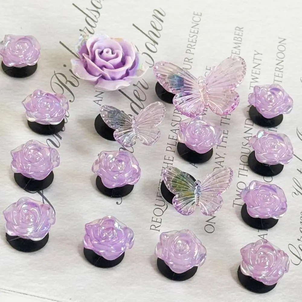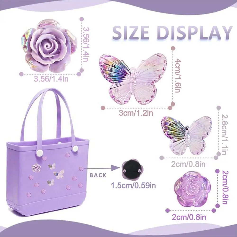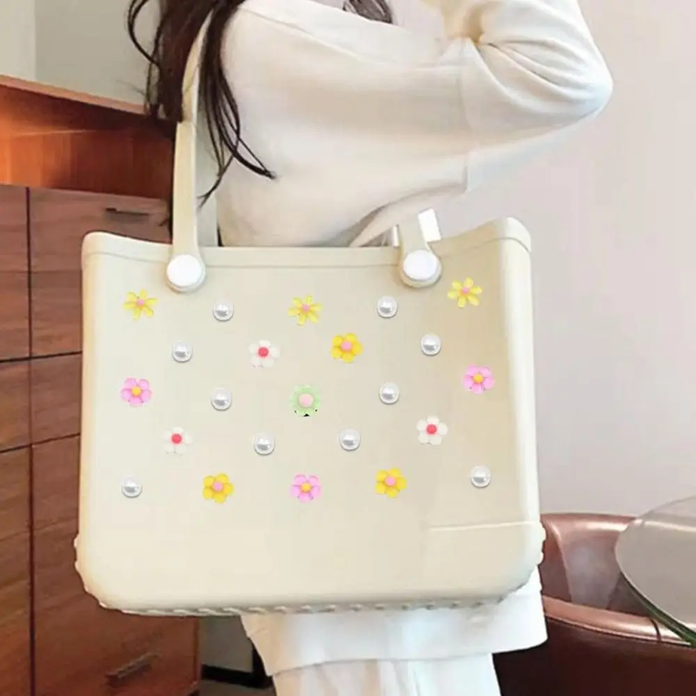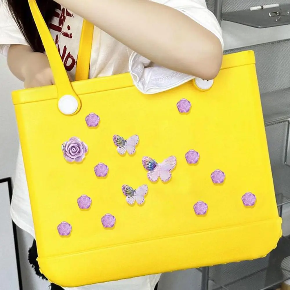 1Set Resin Charms for Bogg Bags Butterfly Pearl Flowers Beach Bag Accessories Charms Cartoon Bag Buckle Ornaments for Bogg Bag