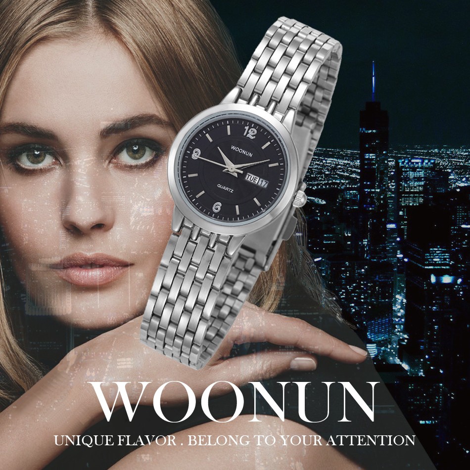 2020 WOONUN Women Watches Fashion Casual Stainless Steel Date Day Quartz Wrist Watches For Women Ladies Watches Relogio Feminino