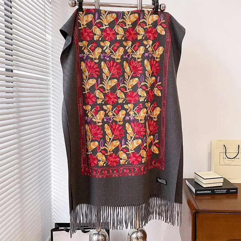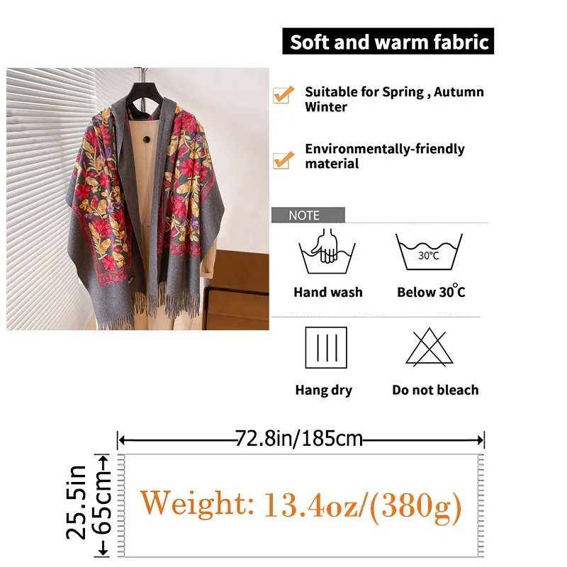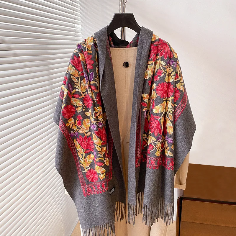 2024 New Soft Cashmere Scarves for Women Floral Pattern Shawl Thick Long Scarf Tassel Casual Lady Winter Warm Female Wraps