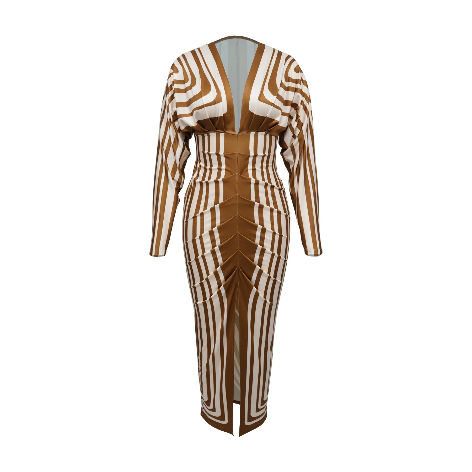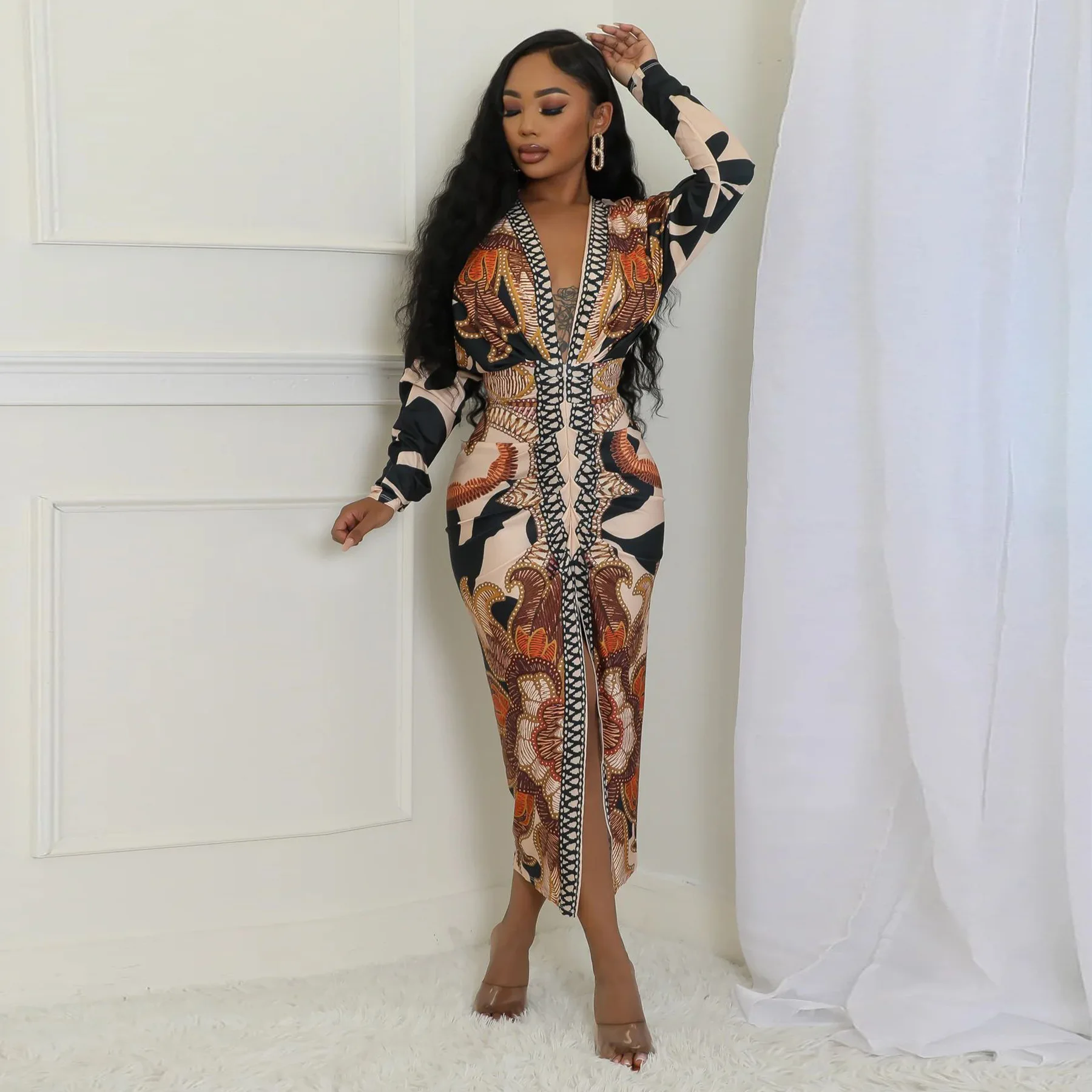 2024 Summer Autumn Long Sleeve Elegant Midi Dress Women's Clothing Casual Party Work Evening Office Lady Pencil Dresses