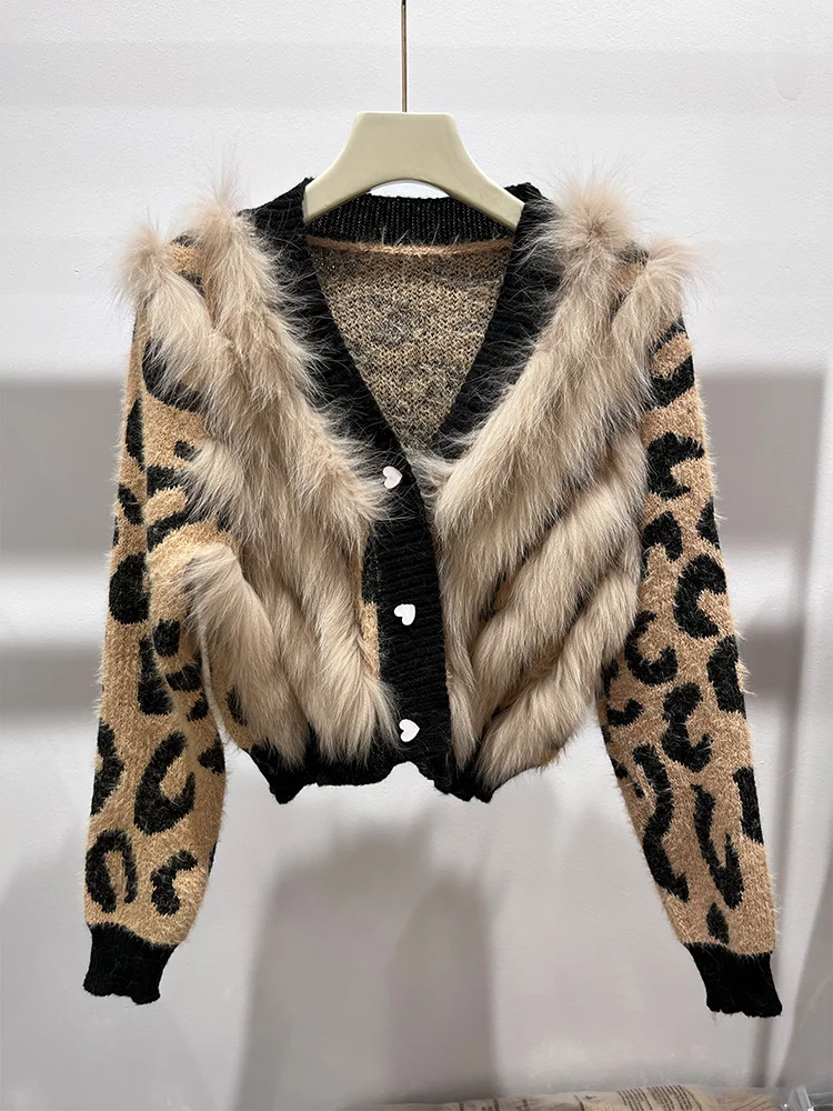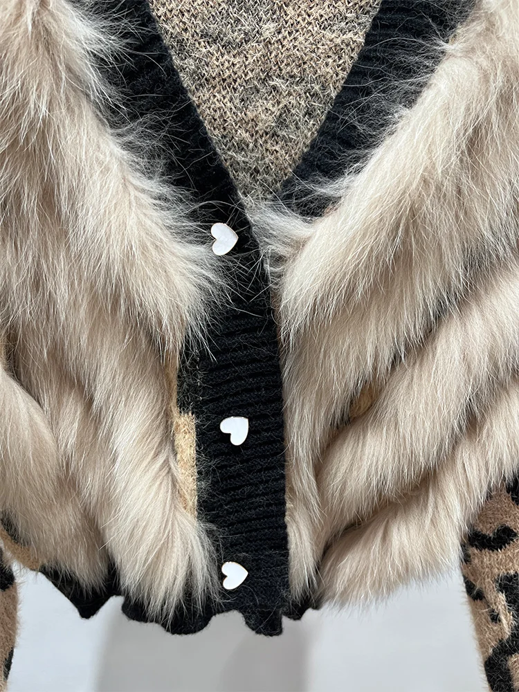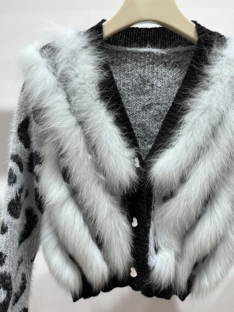 2025 Autumn Women Real Natural Fox Fur Oversized Cardigan Spring Special Design Sweater Wear Outwear